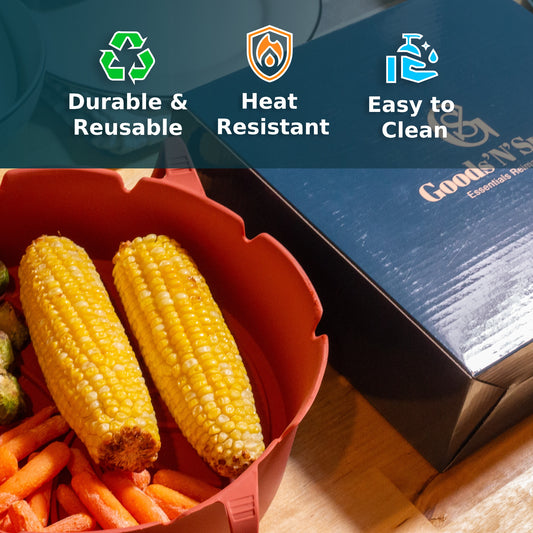 Goods 'N' Such Silicone Air Fryer Liner - 2 Pack with Mitts - Reusable Liner - Dishwasher Safe - 8 inch - 6 to 8 QT - Air Fryer Insert - Easy to Clean - Heat Resistant Air Fryer Basket - Non Stick